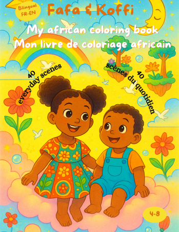 Fafa & Koffi is a coloring book designed to help children see themselves in the characters they color. It highlights: